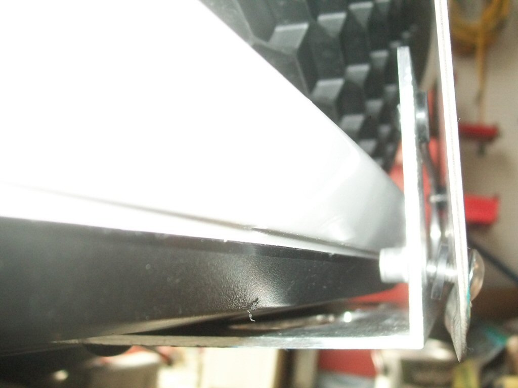 Front Remove all fasteners from bracket, and set aside with corrosponding well nuts or rubber washers. Raise the vehicle for access to the underside of the front fascia, and secure with the parking brake and wheel chocks or jack stands as necessary. Clean the area where the bracket is to be installed, and apply masking tape to protect fascia. Mark center line on bottom of fascia. Tip: use fascia shape and fasteners or indents/markers underneath as guides. Fully thread 15mm long screws in bracket without rubber washers or license plate. Hold bracket flat against bottom of fascia with exposed ends of plate mounting screws touching masking tape against front of fascia. Mark the three mounting holes on the flat part of the fascia bottom. Remove the plate screws from the bracket and set it aside. Drill marked holes with 1/2" spade bit, and insert three of the well nuts into the holes. Remove masking tape. Attach bracket with screws that were included with the well nuts. If installing the license plate without a decorative plate frame, install the rubber washers between the bracket and license plate. The washers absorb vibration, and allow a margin of space, so the plate screws do not touch the fascia. Install the front plate onto the plate bracket with the two 15mm screws. |