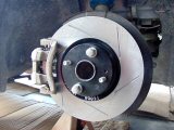for StopTech's slotted rotors for excellent wet braking and superior degassing, and Hawk's DTC-30 compound high