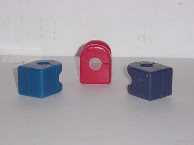 Suspension / Brakes | Neglecting the suspension for quite some time, assuming the swaybars and associated hardware were doing fine, the car has been long overdue for some improved swaybar bushings. These stiffer polyurethane bushings fit the bill nicely, and ours are dyed purple for our car. The prototypes were installed in April '03, and production units were made available a few months later. |