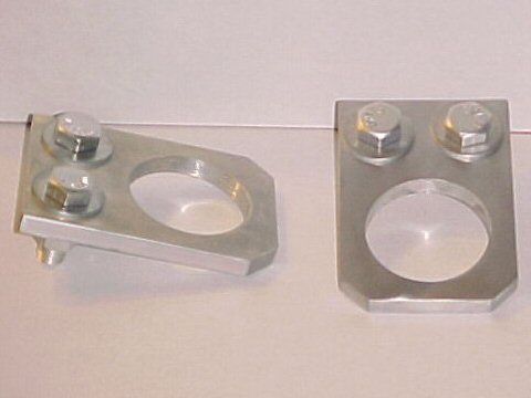 Suspension / Brakes | This part became a necessary ingredient in our rear swaybar installation kits when DCX stopped manufacturing the original stamped steel parts. These brackets hold the swaybar to the chassis via bushings. The function of ours is same as stock, however the billet aluminum construction and reinforced shape solves the problem we've seen of the OEM brackets snapping under high load. Ours won't rust, either! |