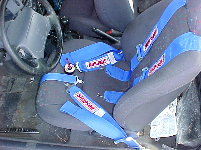 Interior | While our Neon is purposed as an all-out race car, we couldn't overlook the need for five safe seating positions, as this the car is also a weekend cruiser. We removed the OEM driver belt and replaced it with this harness. Rear seat belts were replaced with lap-only restraints for weight reduction. |