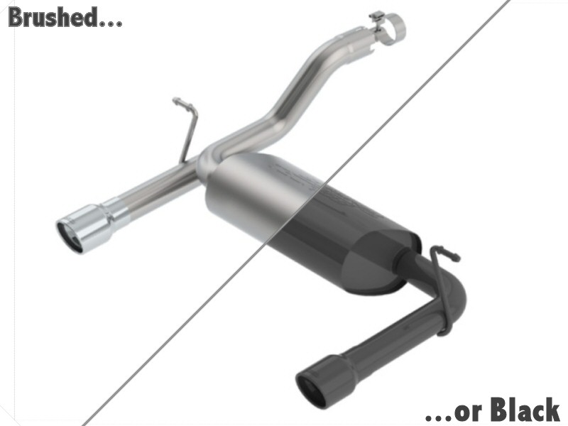 These Borla axle-back kits start with 2-1/2" mandrel-bent stainless steel and end with a dual split rear exit with 3-1/2" round angle-cut tips.  They're designed to give you options with both sound level and appearance, for creating the perfect sound and look to suit your needs.  In addition, these exhausts improve airflow and increase horsepower!  All systems are made from durable stainless steel with ultra-smooth mandrel bends, and come in brushed or black coated.