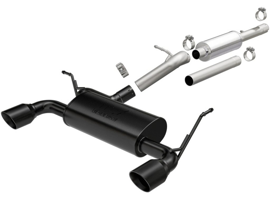 Made in the USA and engineered to last, for those seeking increased performance and better economy, MagnaFlow MF Series Performance Exhaust systems deliver the smooth, deep sound you want and the wide-open performance power you need.  Magnaflow systems feature straight-through flow designs for the ultimate in unrestricted horsepower and torque for big power while maintaining exhaust efficiency.  Main pipe diameter is 2.5", and the twin polished or black tips will look great on your Jeep.  All stainless steel construction means it's built to last, too!